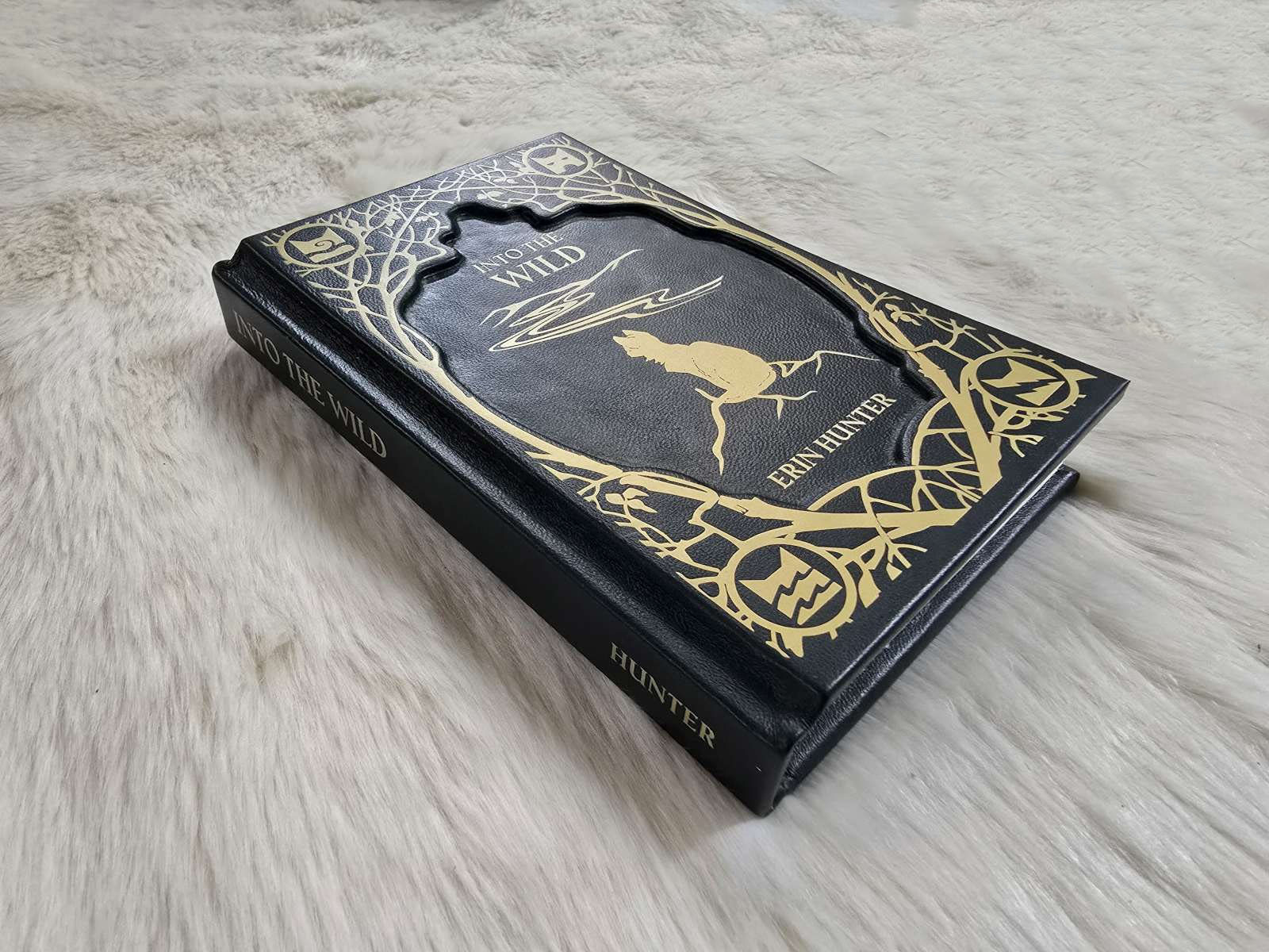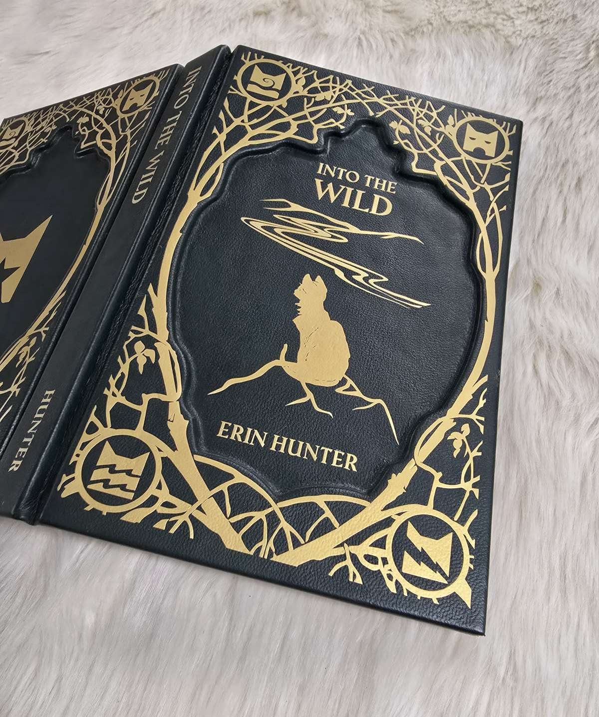 Bound with green leather and adorned with the clan symbols, Into the Wild is the first of the Warrior Cats series, following the young housecat Rusty and his adventures in ThunderClan.